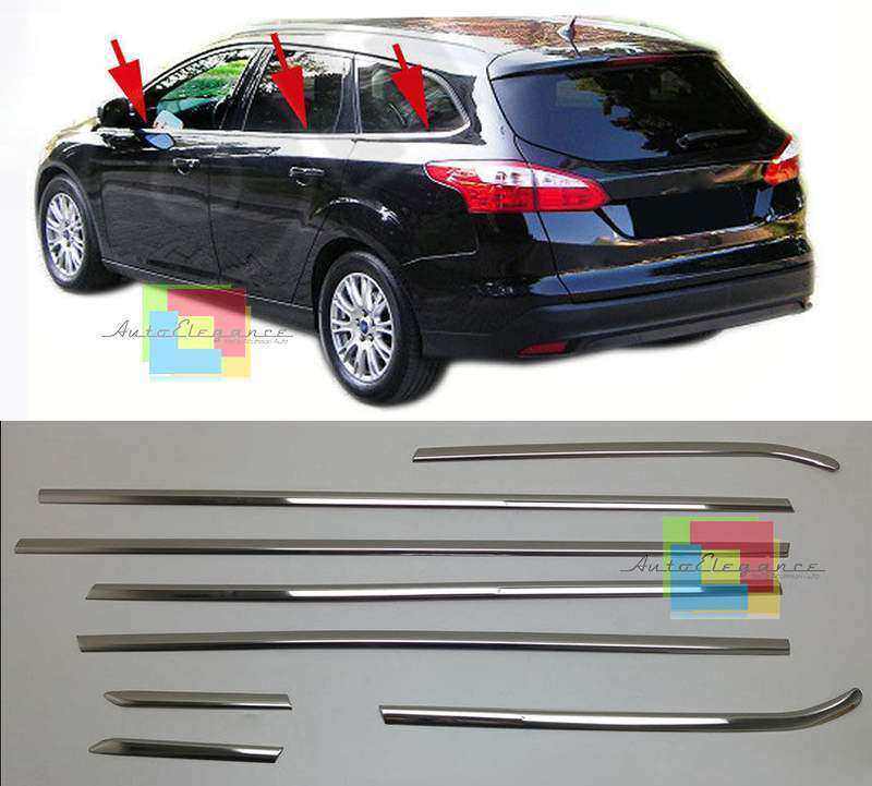 FORD FOCUS MK3 STATION WAGON 2012+ CORNICE FINESTRINI FINITURA CROMATA ACCIAIO I
