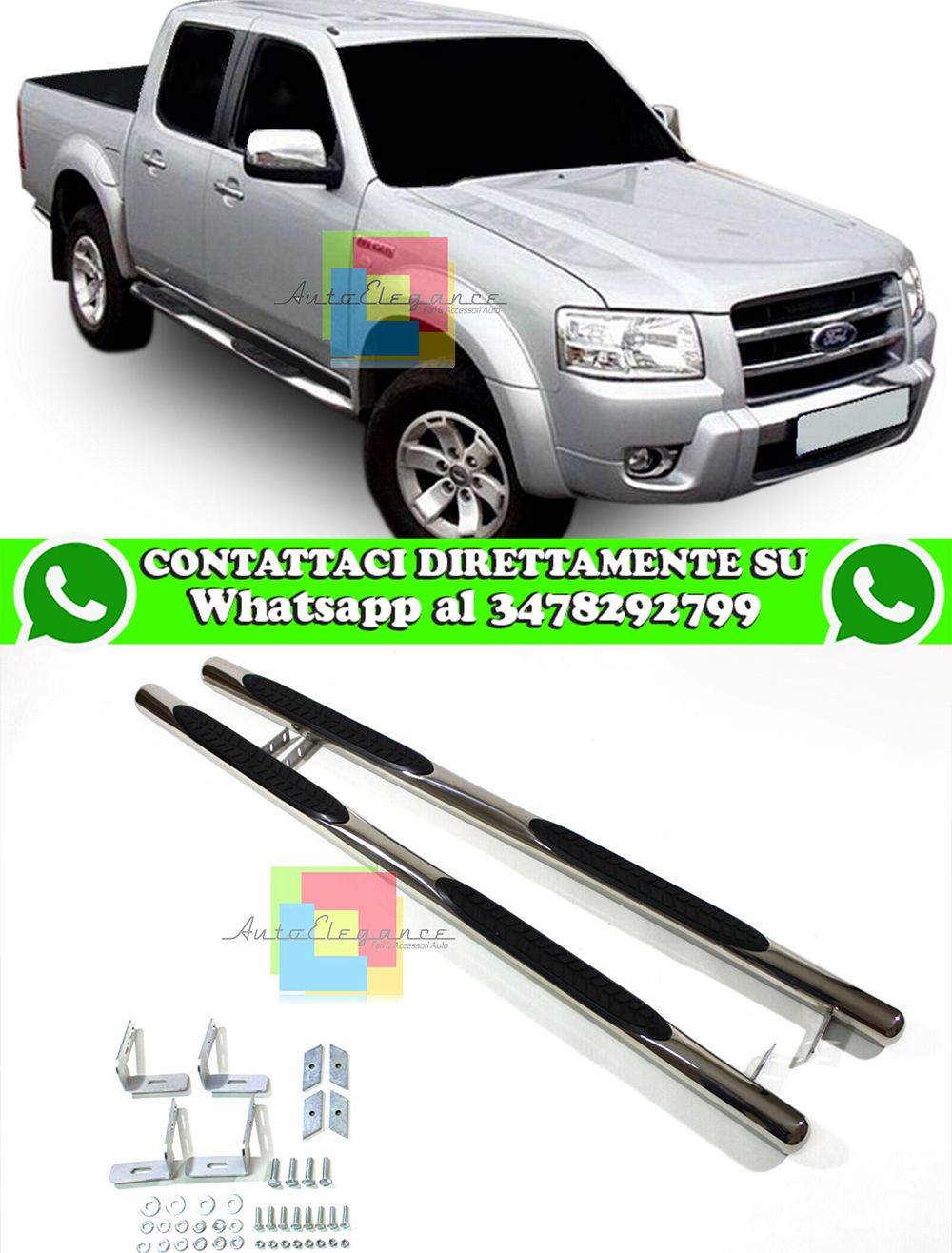 FORD RANGER 2006-2013 PEDANE LATERALI TUBOLARI SOTTO PORTA ACCIAIO INOX PVC