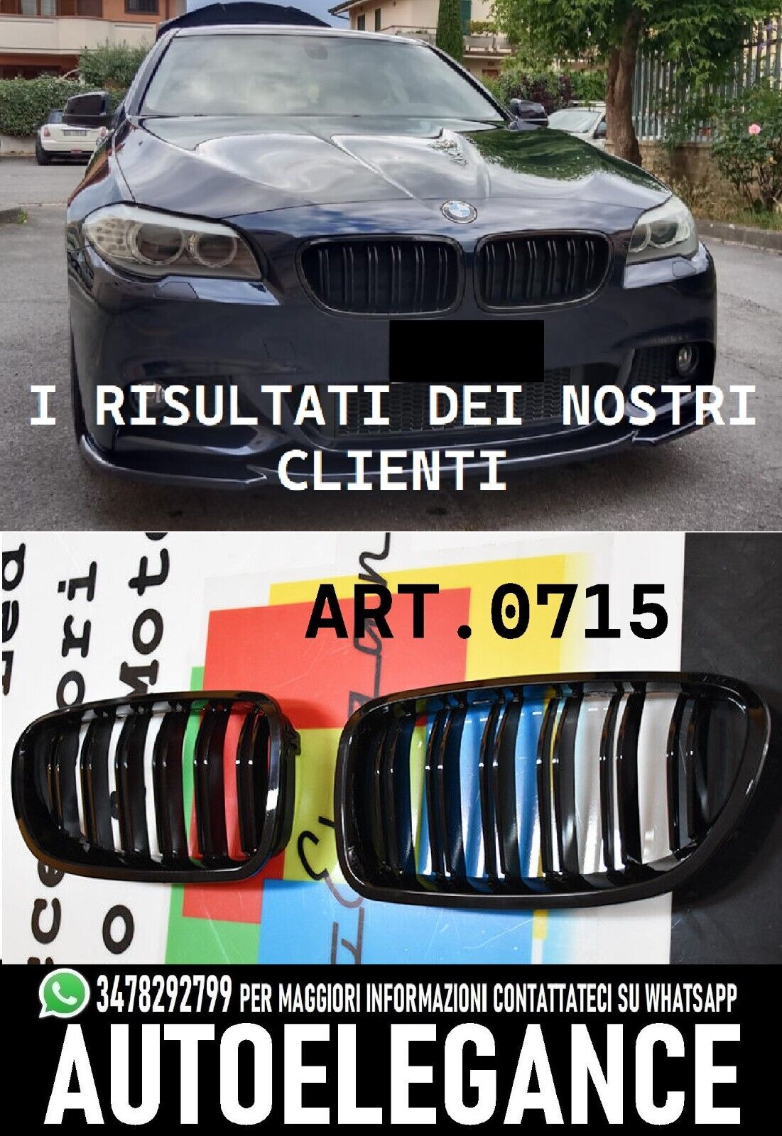 GRIGLIA ADATTA PER BMW SERIE 5 F10 F11 DOPPIA FASCIA NERO LUCIDO