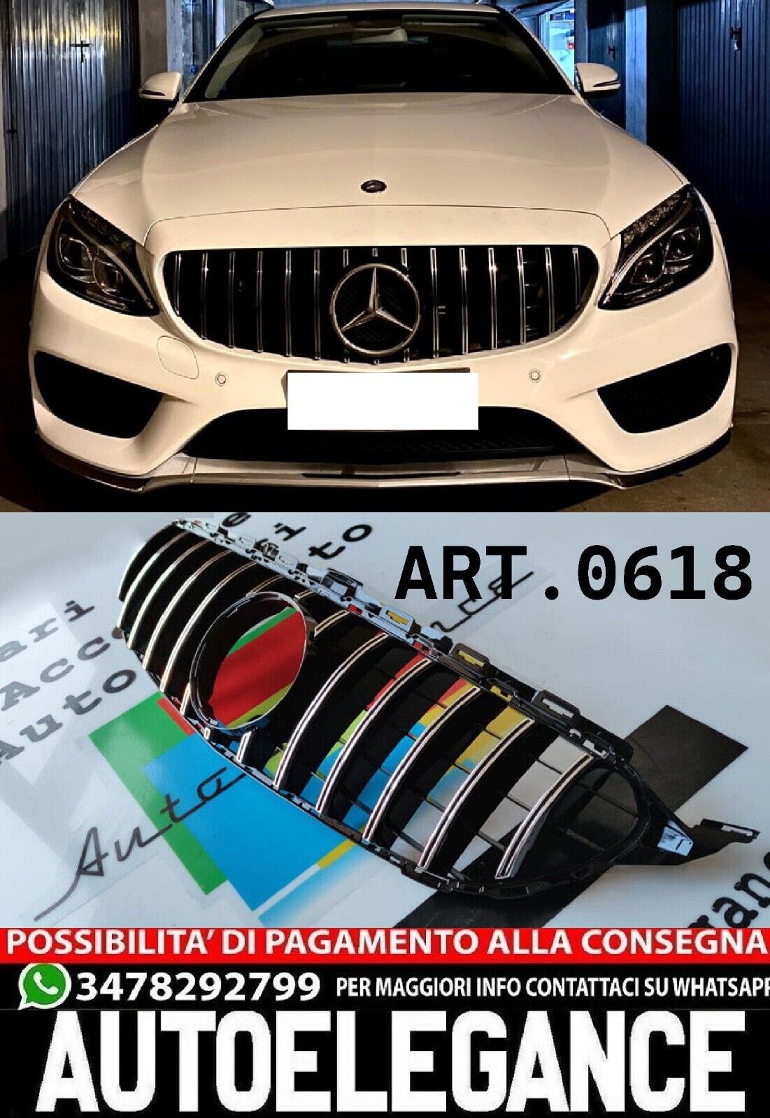 GRIGLIA ADATTA PER MERCEDES CLASSE C W205 2015-2018 SATINATA SENZA CAMERA