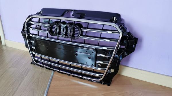 GRIGLIA ANTERIORE AUDI A3 8V 2012-2015 CALANDRA LOOK S3 NERA CON PROFILI CROMATI