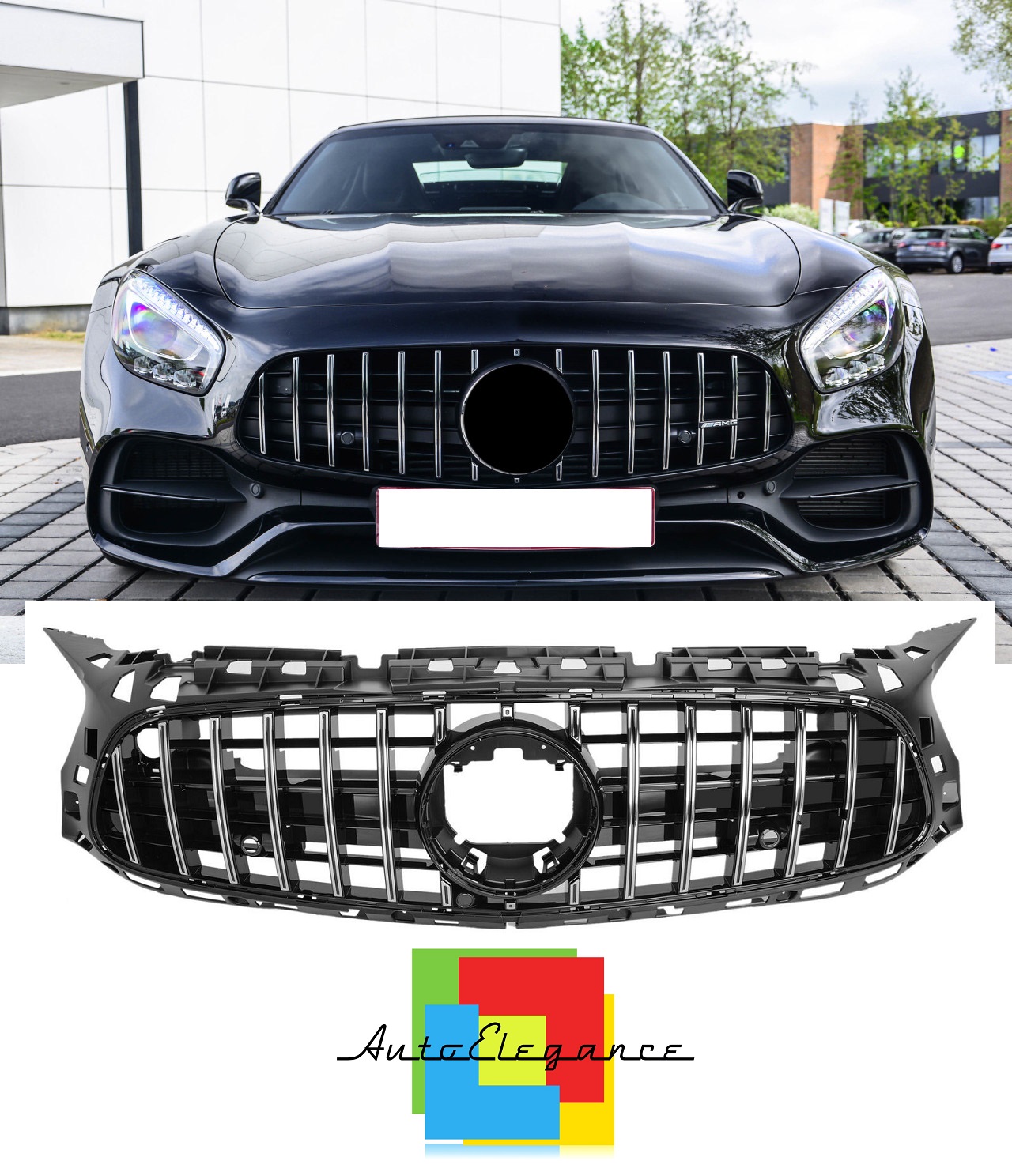 GRIGLIA ANTERIORE MERCEDES AMG GT R190 C190 W190 2017+ LOOK GT FINITURE CROMATE NEWS