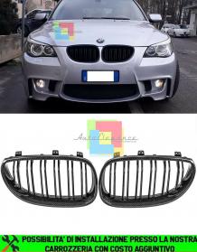 GRIGLIE ANTERIORI M5 PER BMW SERIE 5 E60 E61 CALANDRA DOPPIA STRISCIA CARBONIO