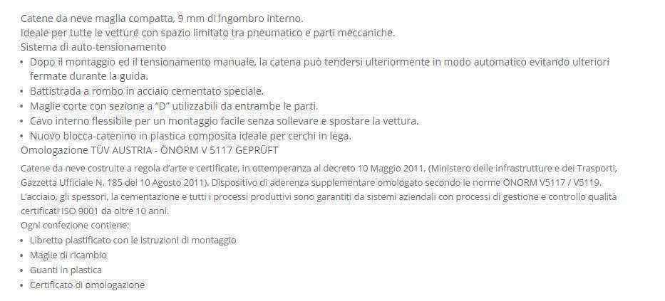 KIT CATENE DA NEVE 9mm PNEUMATICO GOMMA 165 65 R15