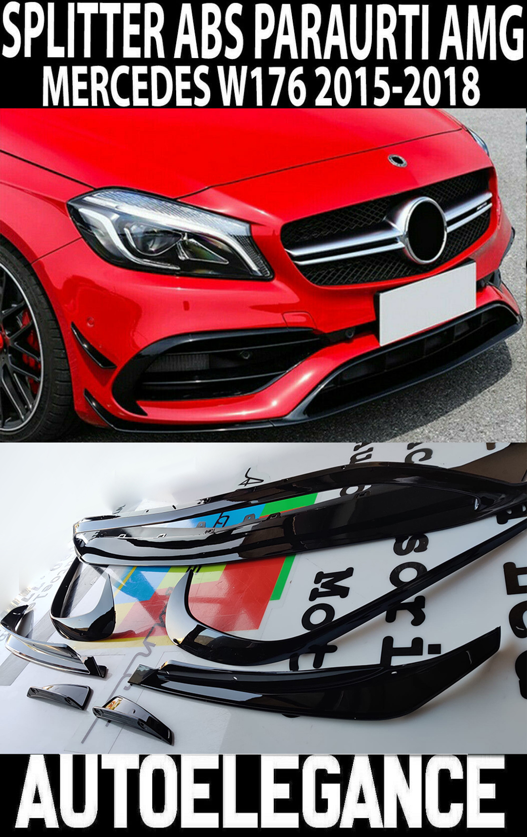 MERCEDES CLASSE A W176 2015-2018 LIFT SPOILER BAFFI SUL PARAURI ANTERIORI SPLITTER LOOK AMG