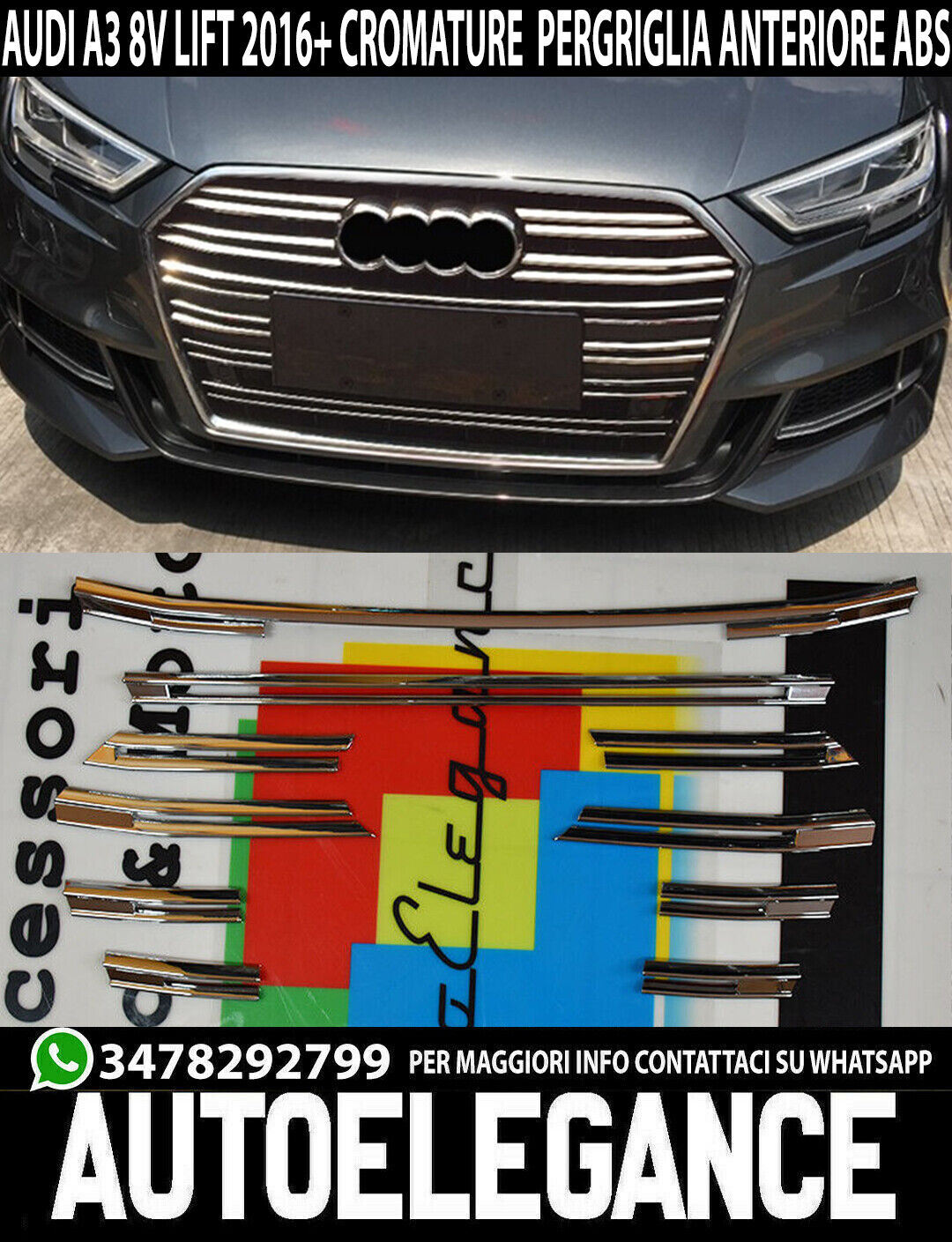 MODANATURE PER AUDI A3 8V 2017+ LIFT CROMATURE ADESIVE GRIGLIA ANTERIORE