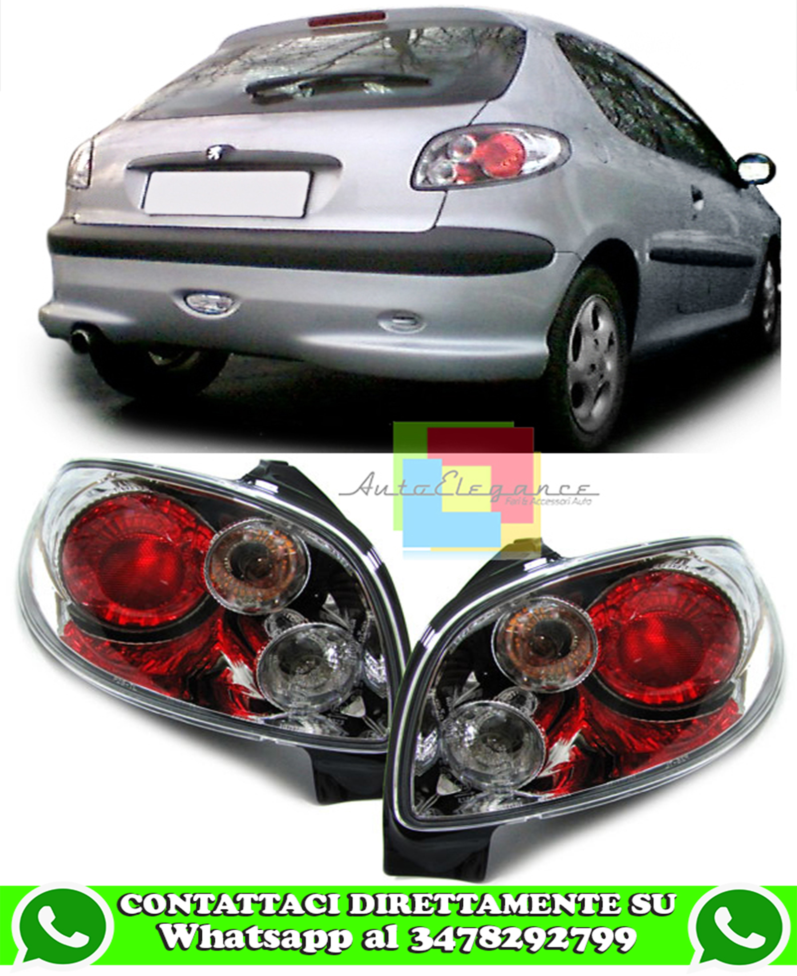 PEUGEOT 206 3 & 5 PORTE FARI POSTERIORI CROMATI TRASPARENTI