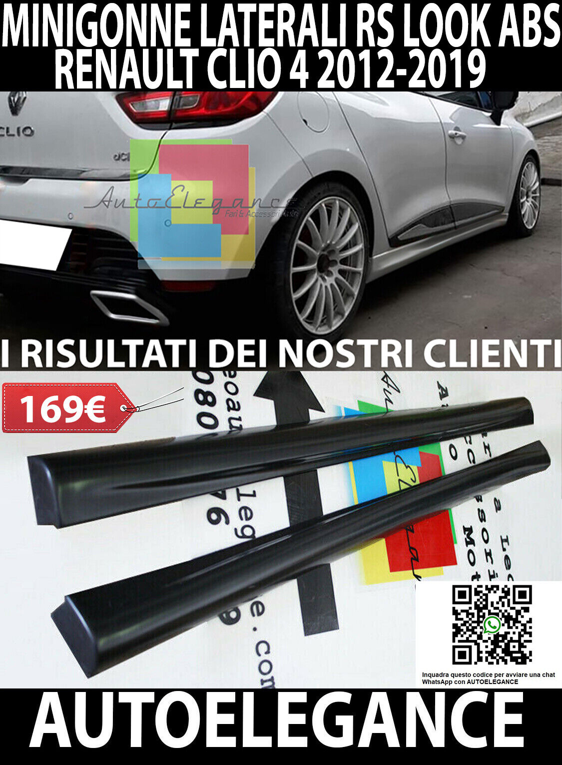 RENAULT CLIO 4 IV 2012+ 5 PORTE MINIGONNE LATERALI SOTTO PORTA RS ABS / PLASTIC