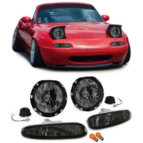 Set di fari in vetro trasparente con indicatore di fumo nero per Mazda MX5 NA 90-98
