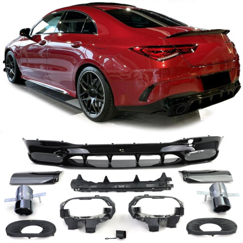 Set diffusore posteriore nero lucido inclusi terminali di scarico neri per Mercedes CLA C118 dal 19