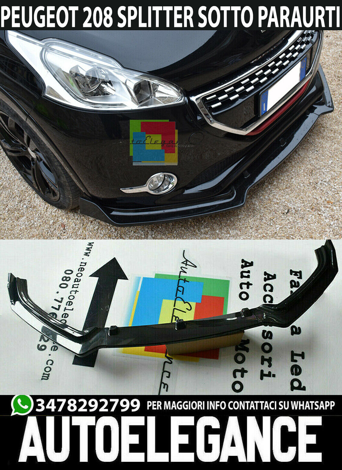 SPLITTER LAMA SOTTO PARAURTI ANTERIORE PEUGEOT 208 ABS NERO LUCIDO SPLITTER ..