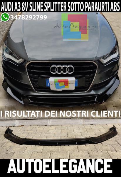 SPLITTER SOTTO PARAURTI AUDI A3 8V 12-16 SLINE ABS NERO LUCIDO SPOILER RS3 S3 .
