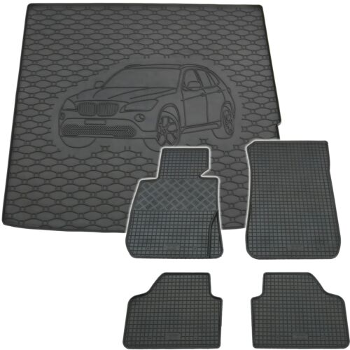 Tappetini in gomma + protezione bagagliaio in gomma con motivo per BMW X1 E84 2009-2015 in un set