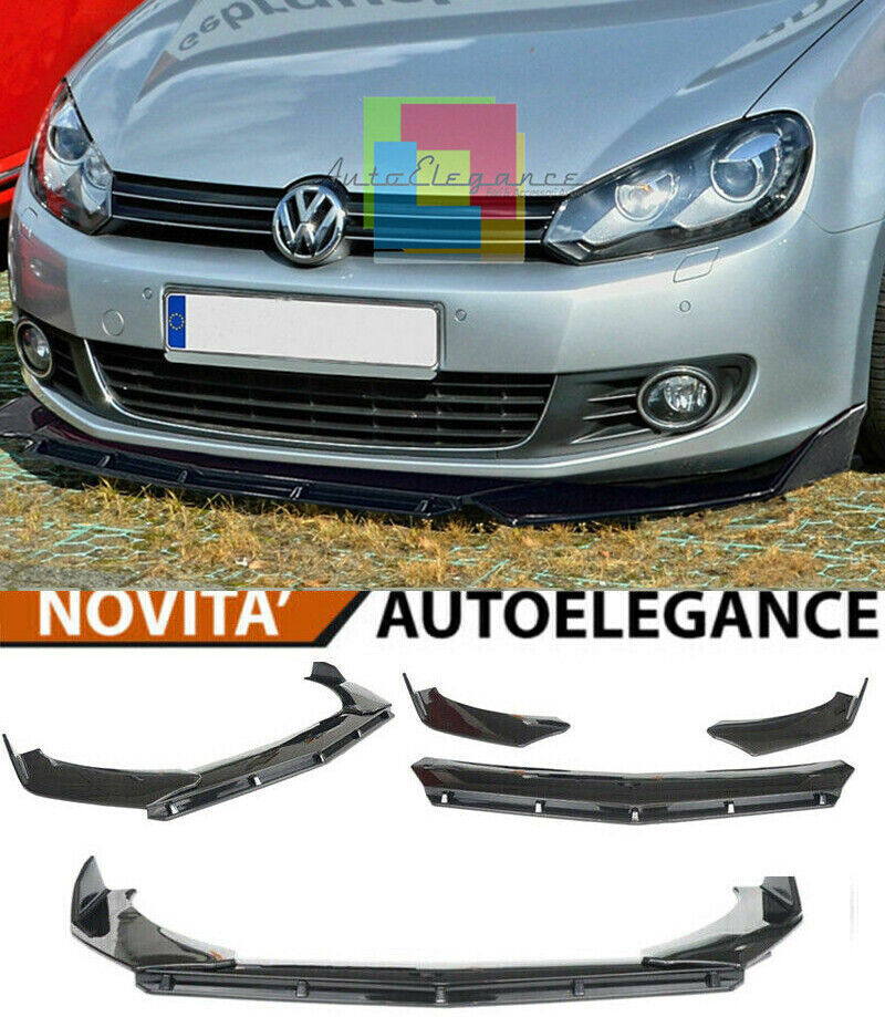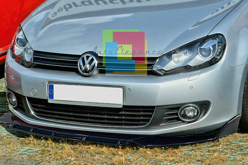 VW GOLF 6 VI SPLITTER PARAURTI ANTERIORE NERO LUCIDO LOOK RS - 3P -