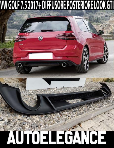 VW GOLF VII 7.5 2017+ DIFFUSORE POSTERIORE SOTTO PARAURTI LOOK GTI IN ABS