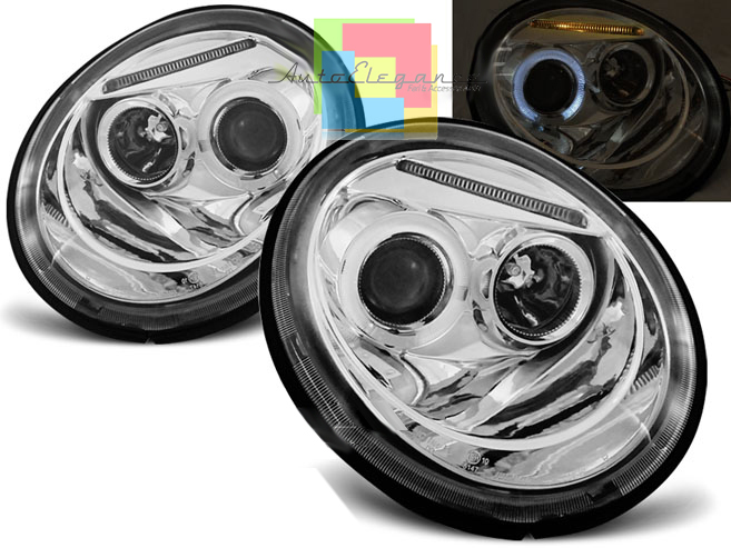 VW NEW BEETLE 1998-2005 FARI ANTERIORI ANGEL EYES BIANCHI A LED CROMATI