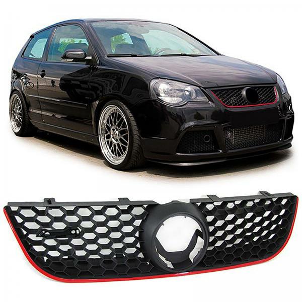 VW POLO 9N3 2005-2009 GRIGLIA ANTERIORE NERA PROFILO ROSSO LOOK GTI